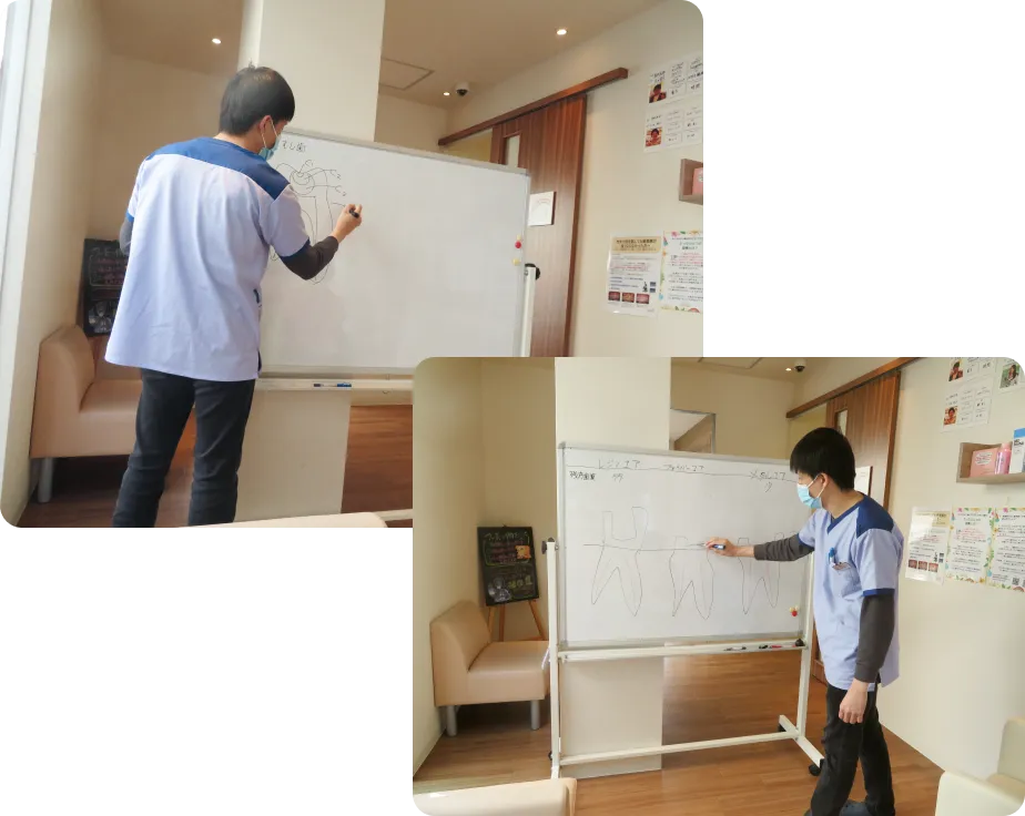 | 歯科衛生士 | 4名(20代前半1名、30代1名、40代1名、50代1名) うち、お子様がいる歯科衛生士は2名 |